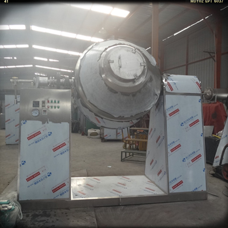 双锥回转真空干燥机(力度干燥)内部结构简单,清扫容易,出料完全,操作简便,能降低劳动强度,改善工作环境。同时由于容器本机回转时物料亦翻动,而壁上不积料,故传热系数较高,干燥速率大,不仅节约能源,而且物料干燥均匀充分,质量好,可广泛用于制药、化工、食品、染料等行业的干燥,符合药品行业“GMP”管理规范的要求